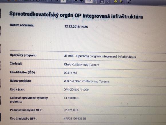 Projekt wifi pre obec košťany nad turcom